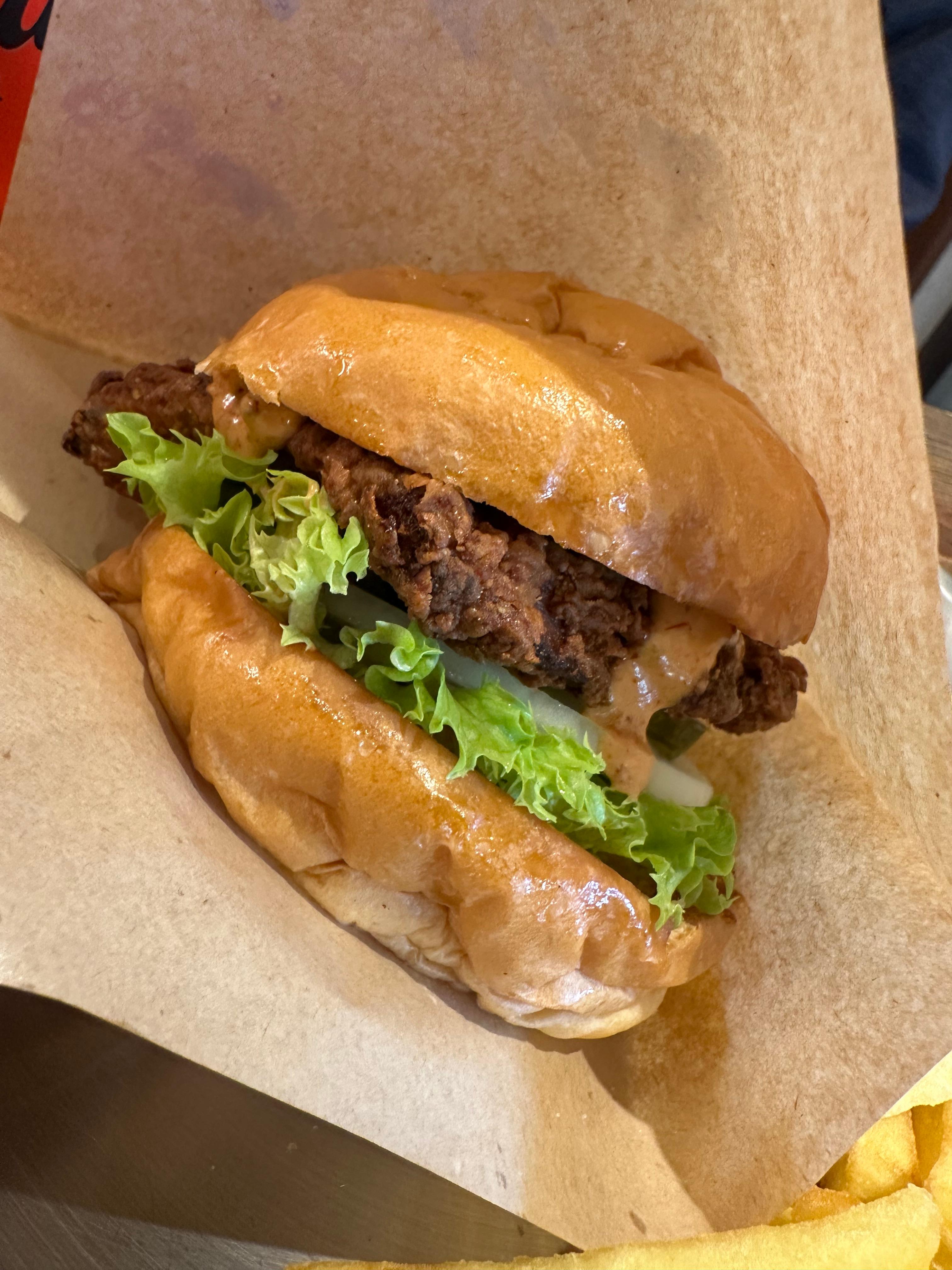 The woman who used to work the counter used to call out numbers, but the new lady only calls out the burger names, which confused some customers (including me). Everyone was like, “Is that mine??” scratching their heads and going up one by one, haha. 😂😂😂 On this day, since I ordered a set, they forgot to include the fries… Looks like the new lady is still getting used to things! Hope she settles in quickly—fighting! 💪