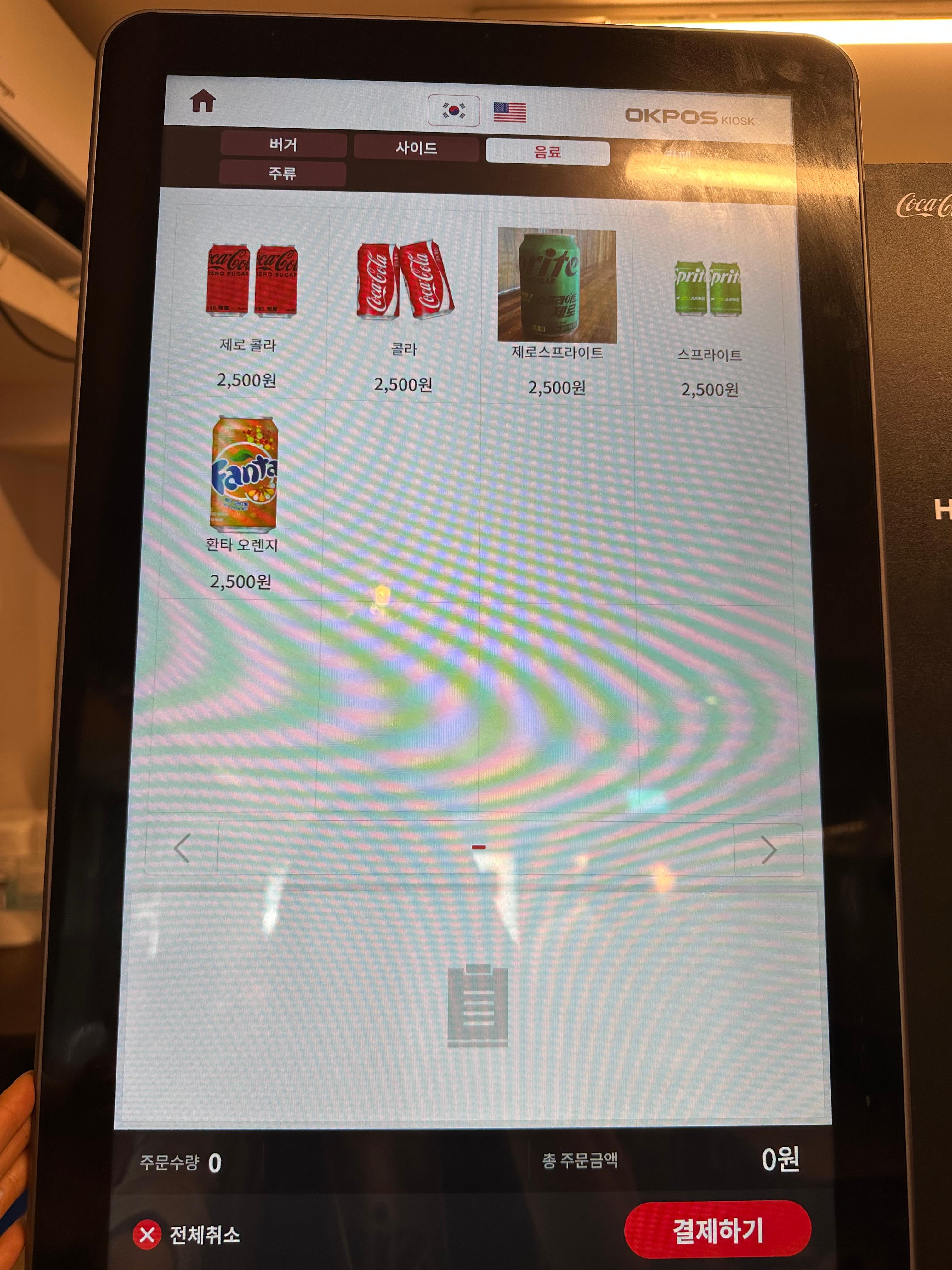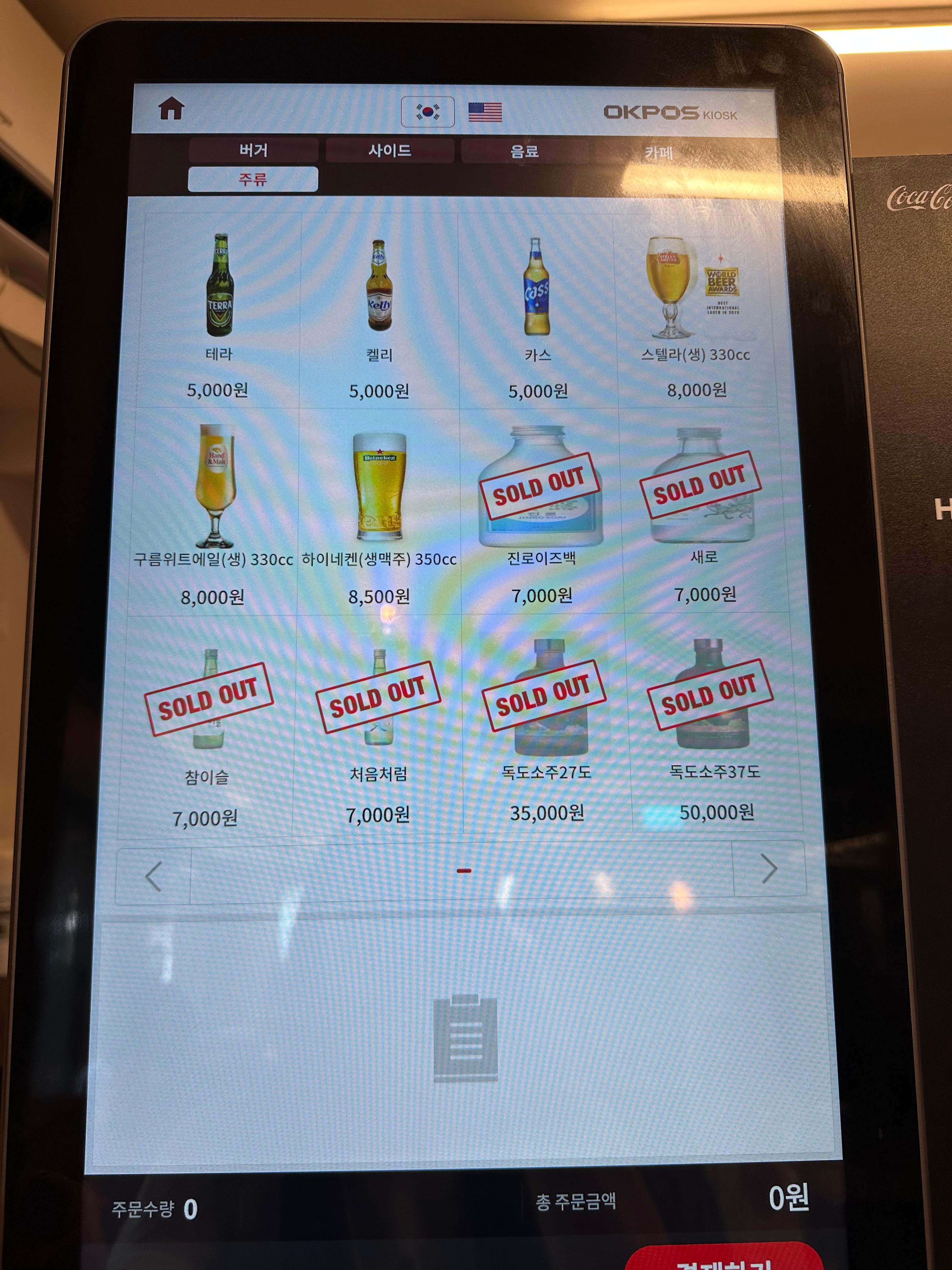 There are also side menu items, and they offer a variety of drinks—Coke, Sprite, Fanta, zero-calorie options, plus beer and even coffee.