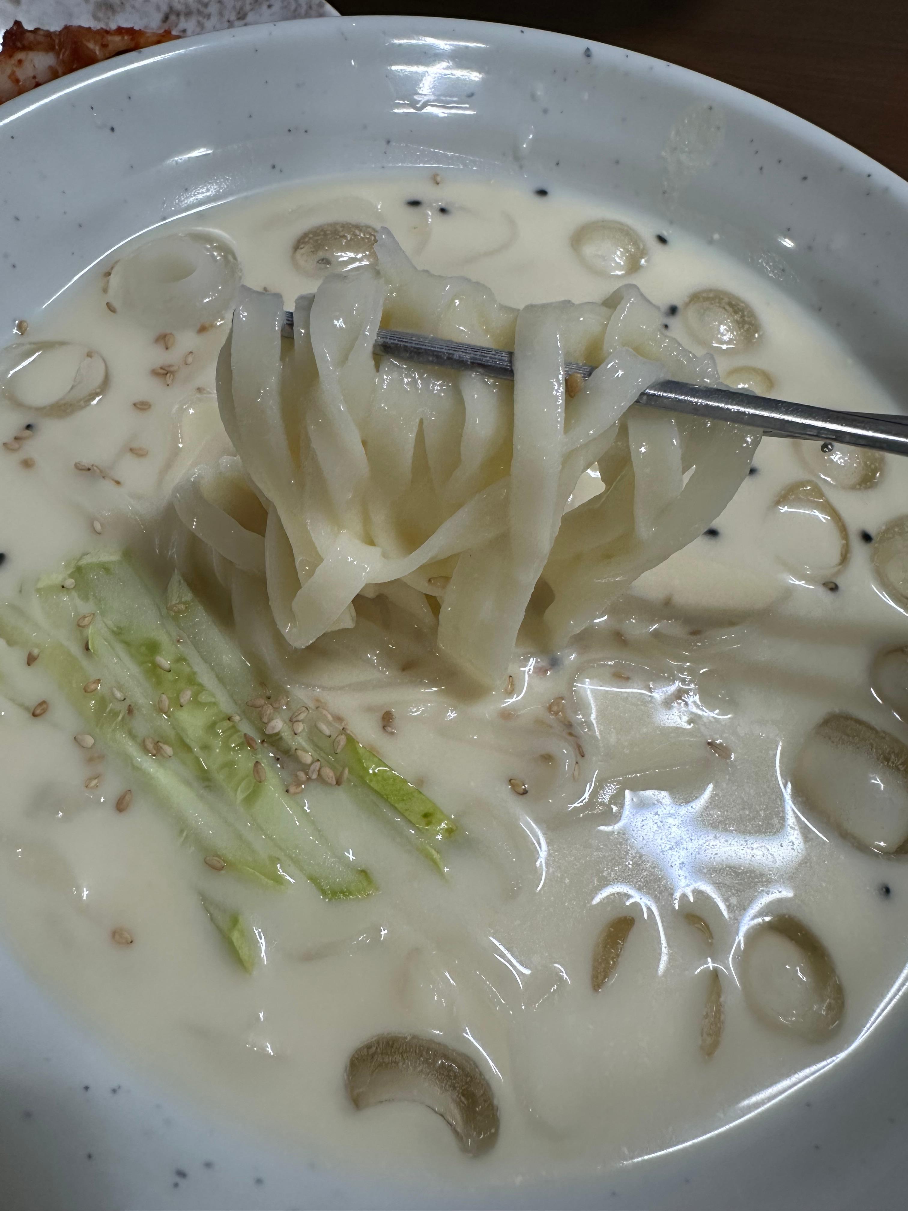 This version is totally different because—get this—they use their signature chewy Kalguksu noodles in the soybean broth!!