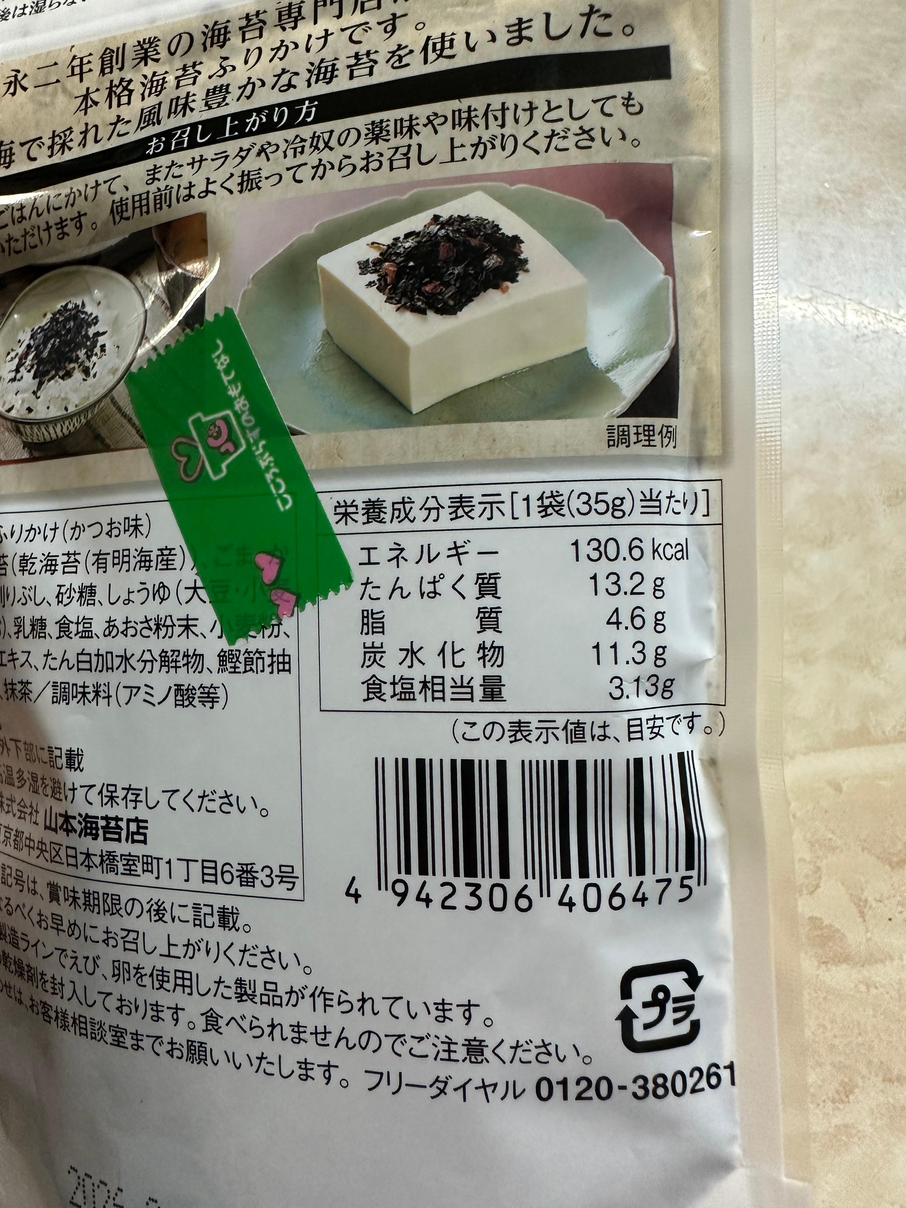 The calorie count is 130 kcal per 35g pack, which is actually lower than the “Mom’s Furikake” I introduced just before this one!