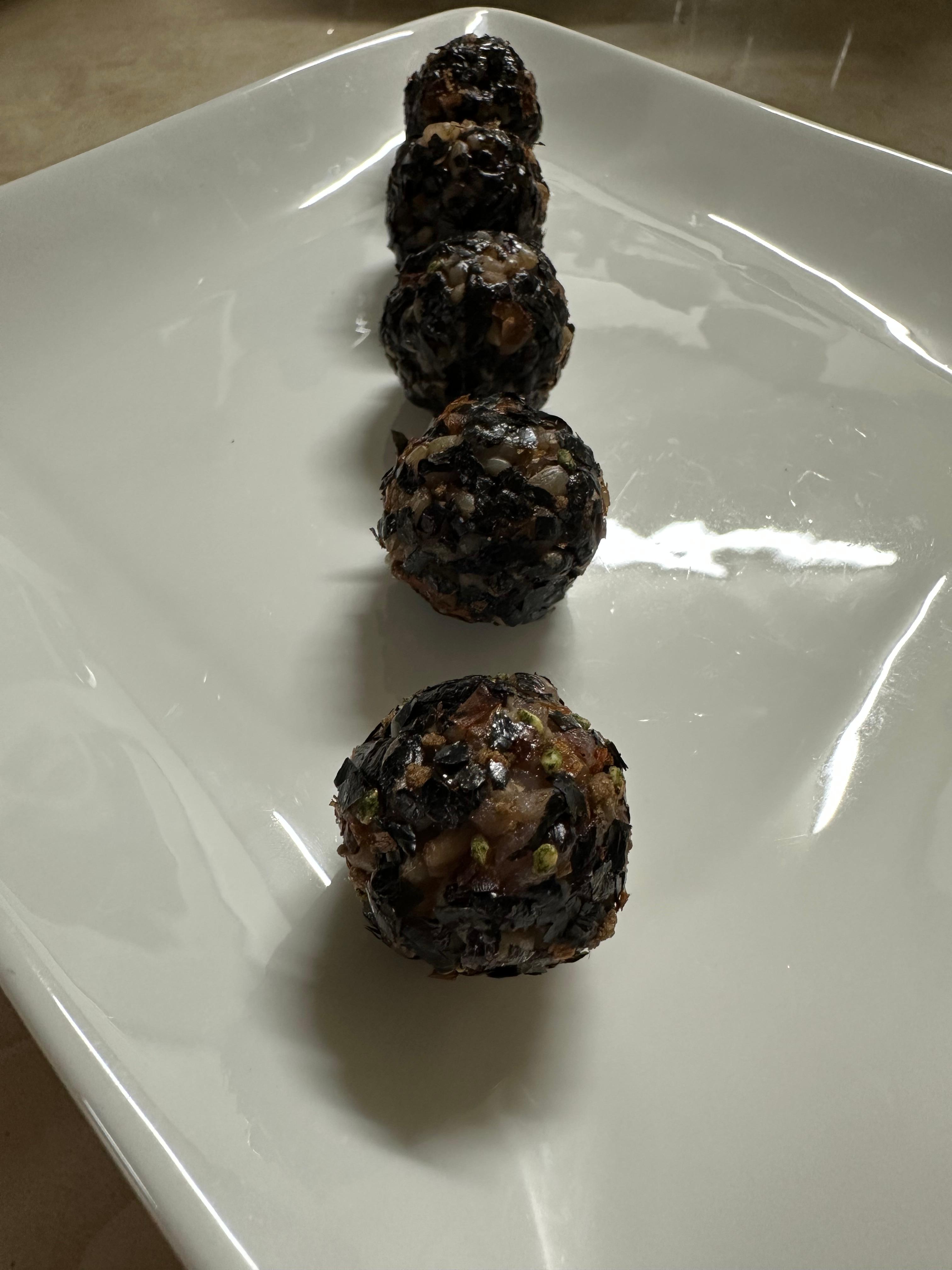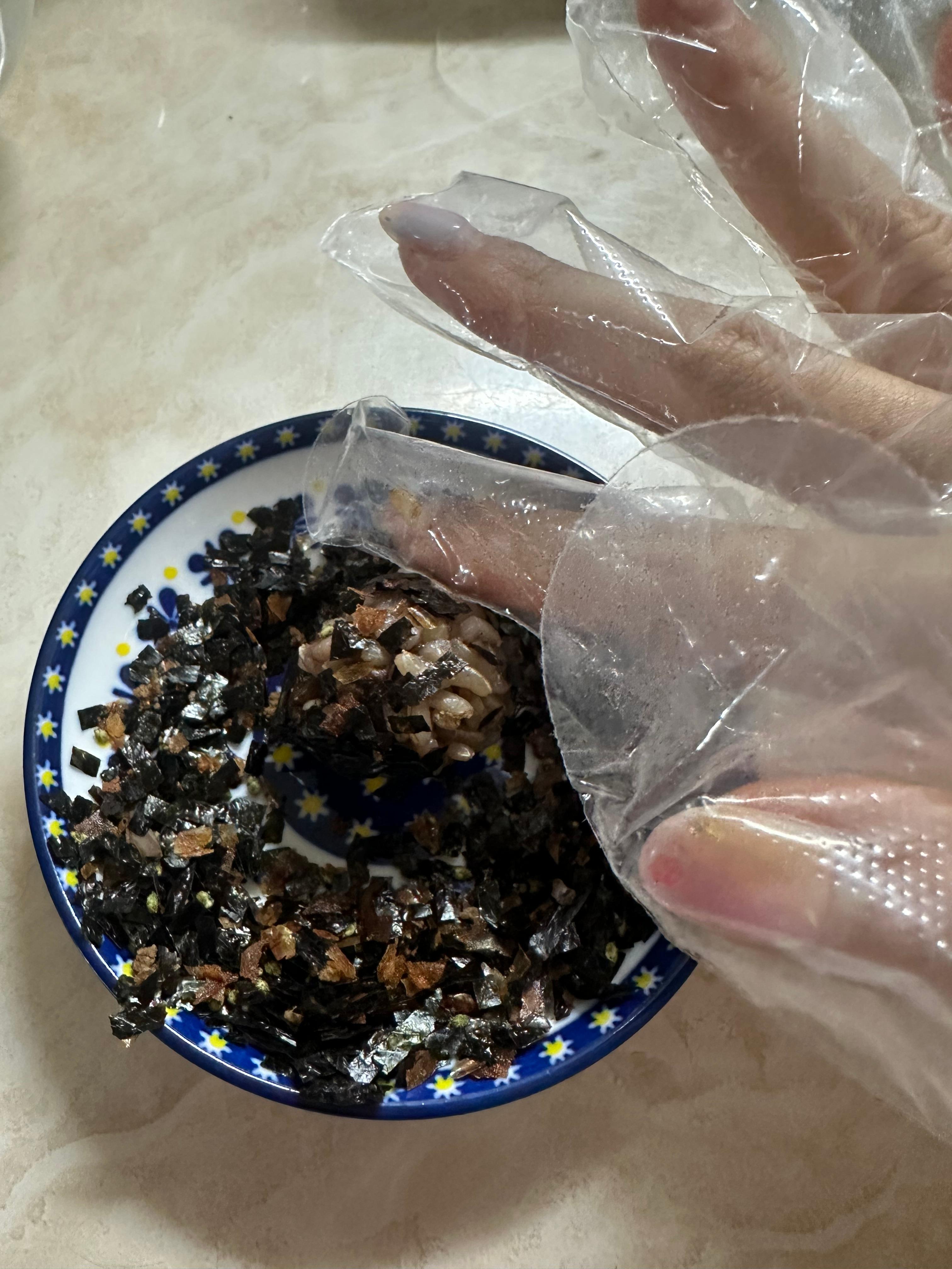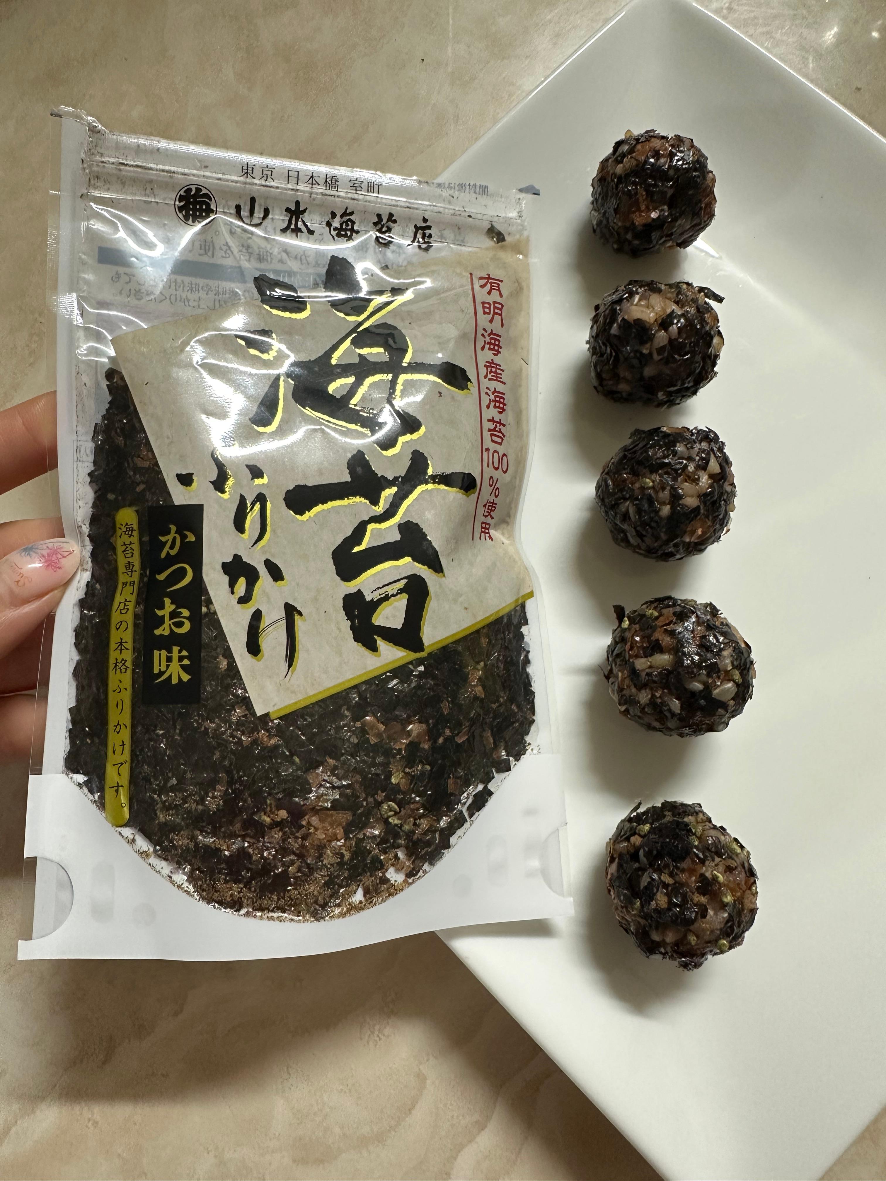 Ta-da!! Here’s the furikake-coated rice ball after rolling it around~~~