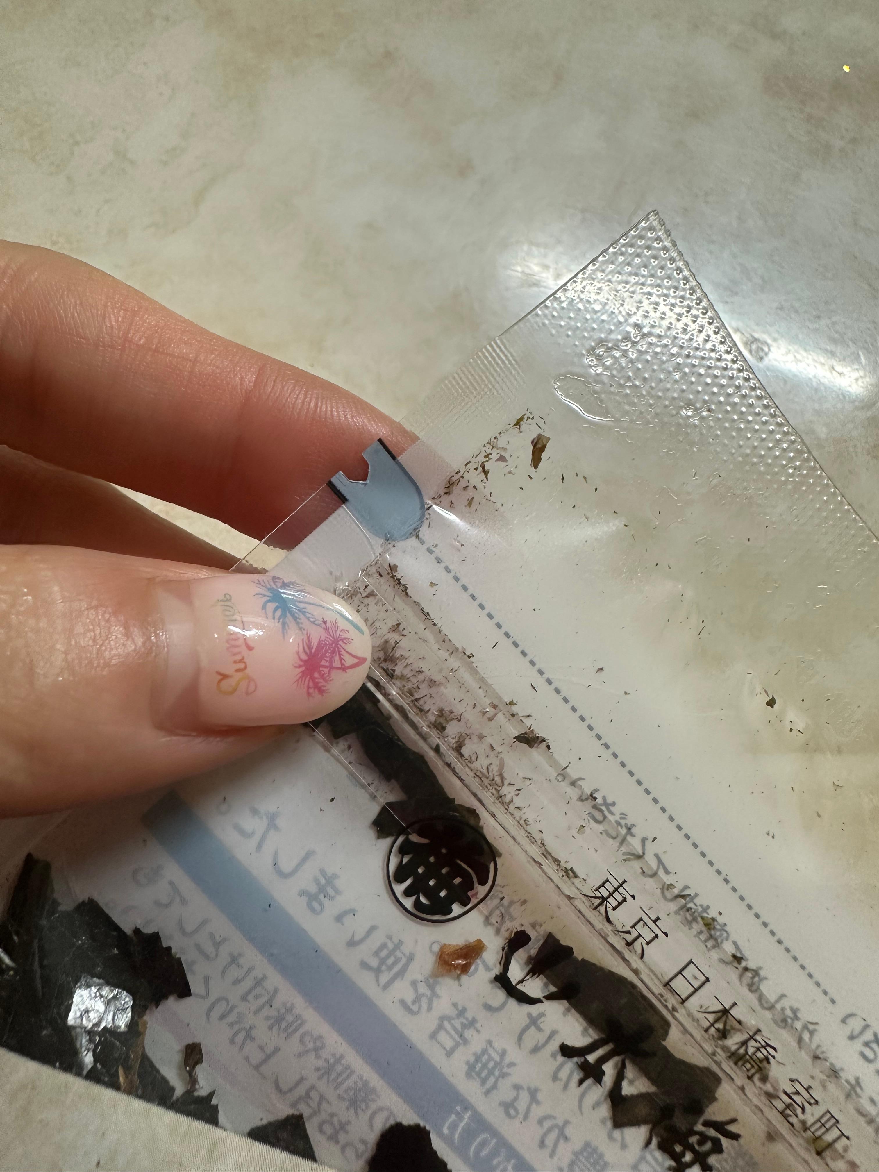 Following the tear line, I pulled it open slowly... and as expected from a seaweed furikake, the inside is really dark — it’s packed with seaweed!